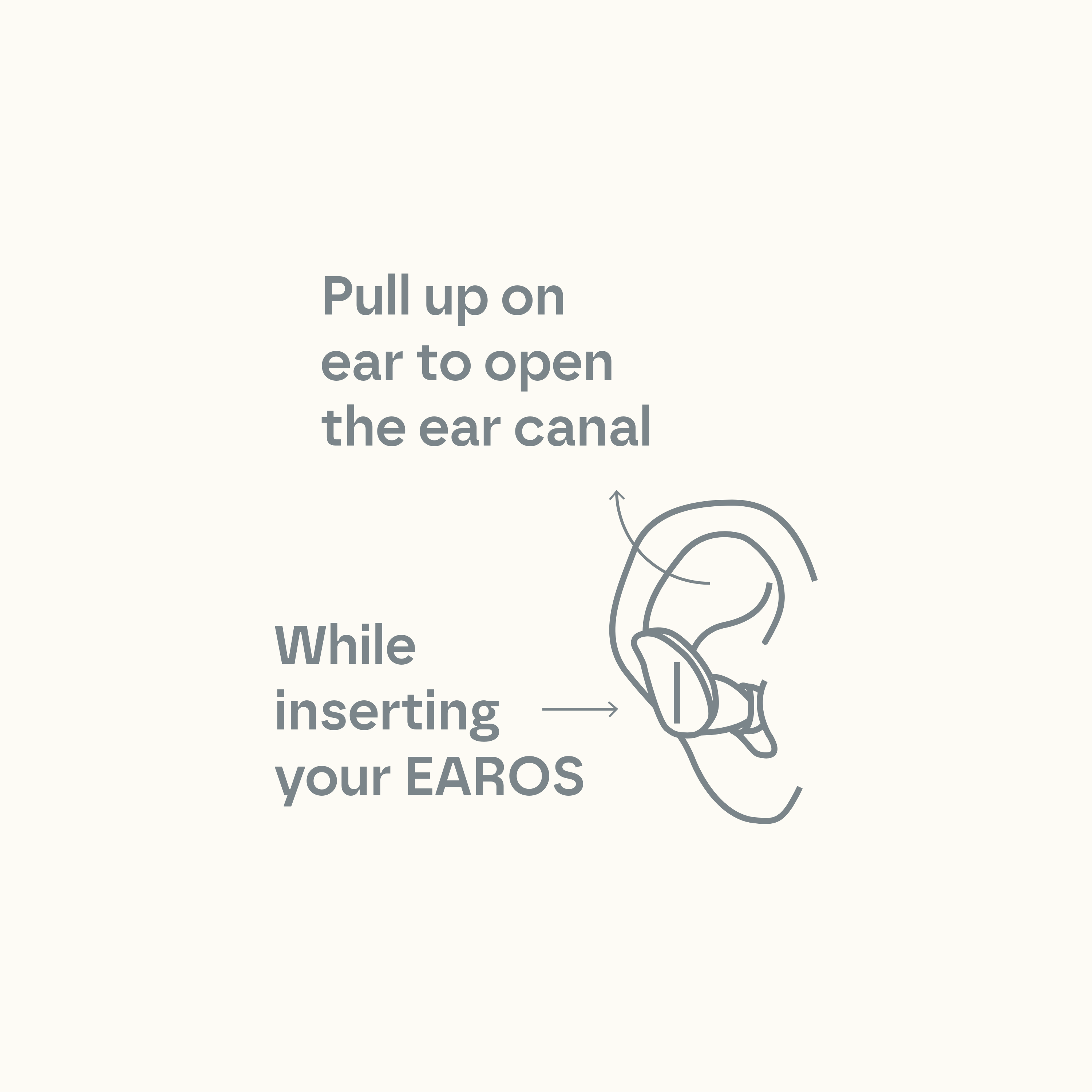 Gently lift the top of your ear to open the canal better while you place the EAROS tip into your ear canal. Press it in firmly enough to create a proper seal.